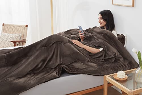 Tametra 毛布 2枚合わせ綿入り 掛け布団 シングル 冬用 暖かい フランネル マイクロファイバー 毛玉なし なめらか 毛布タッチ 秋冬用 パイル地 吸湿発熱 保湿機能 抗菌防臭加工 丸洗いOK 防寒対策 シングル 150✕210cm ブラウン