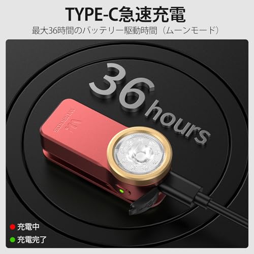 Wurkkos HD03 クリップライト LED軽量小型懐中電灯,680ルーメン,3つの光源,スポット/フラッドライトとRGBカラーライト, Type-C充電式,IPX6防水,射程180メートル,クリップオン 磁気犬 散歩防災 停電対策 作業用 ハンディライト緊急用 キャンプ-赤
