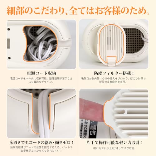 PSE認証済みで一年間の品質保証付き。 寝具の手入れから衣類乾燥まで、一台で多役に活躍します。
