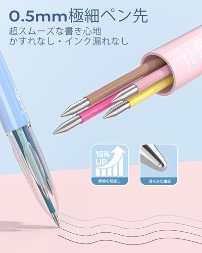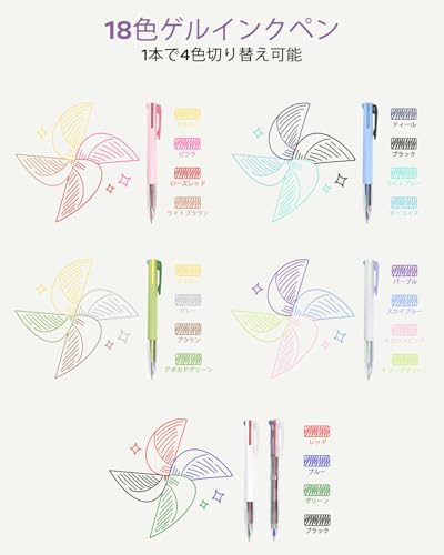 Four Candies 4色ボールペン 6本セット18カラーインク 0.5mm かわいい かきやすい 多色ボールペン 多機能ペン 筆記具 なめらか 便利