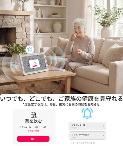 家事・献立・買い物リストの一元管理、お薬リマインダーで高齢者を見守ります。