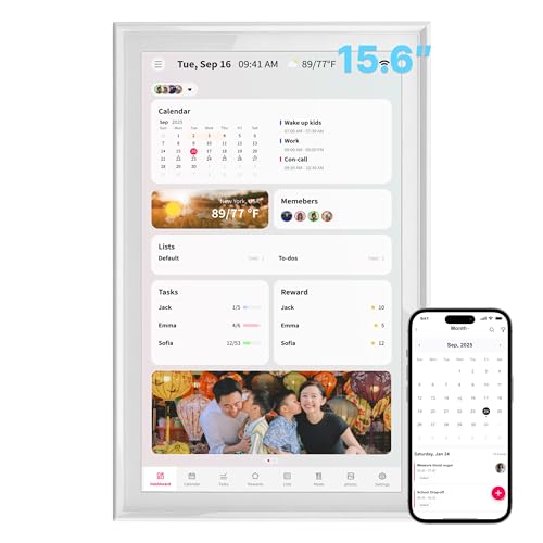 Ingnok スマートデジタルカレンダー 15.6インチ IPS液晶 1920×1200 タッチスクリーン 双方向同期対応 家族スケジュール共有 献立プランナー ToDoリスト お薬リマインダー ごほうび機能 フォトアルバム 天気予報 自動明るさ調整 ホワイト