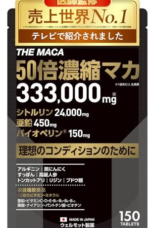 【売上世界No1/医師監修】50倍濃縮 マカ サプリ 333,000mg 亜鉛 450mg シトルリン 24,000mg バイオペリン 150mg アルギニン 【テレビで紹介されました】 THE MACA 栄養機能食品 (12種類の ビタミン ミネラル) 日本製 150粒 WELLMOTTO 36%OFF ¥2,980 ¥1,904 24ポイント 3週間前 2月15日13時48分 ドラッグストア ドラッグストア