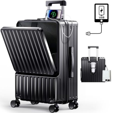 [BARGOHOY] スーツケース フロントオープン 多機能 キャリーケース 軽量 カップホルダー付き 隠しフック機能 キャリーバッグ USBポート付き 耐衝撃 静音 360度回転 TSAローク ファスナータイプ キャリーバッグ 人気 おしゃれ 旅行 ビジネス 出張 修学 泊まる 入院 (ブラック, Mサイズ/63L(4~7泊)) 86%OFF ¥49,800 ¥6,696 67ポイント 3週間前 2月15日10時58分 ファッション ファッション