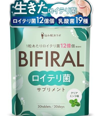 【生きた ロイテリ菌 360億個 贅沢配合】 ビフィラル 生きた ロイテリ菌 サプリメント クリアミント味 150倍濃縮シャンピニオンエキス 乳酸菌 ビフィズス菌 キシリトール 30日分 エチケット プロバイオティクス BIFIRAL 悩み解決ラボ 40%OFF ¥1,980 ¥1,177 17ポイント 2か月前 2月8日14時07分 ドラッグストア ドラッグストア