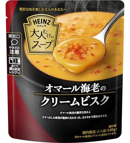 ハインツ (HEINZ) 大人むけのスープ オマール海老のクリームビスク 140g×5袋 ロブスター レンジ対応 レトルト 18%OFF ¥1,415 ¥1,159 13ポイント 2か月前 2月5日1時03分 食品・飲料・お酒 食品・飲料・お酒