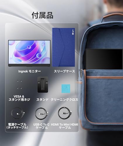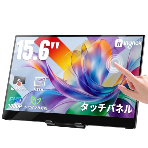 Ingnok モバイルモニター 15.6インチ タッチパネル 10点タッチ 調整可能スタンド付き FHD 1080P ポータブルモニター 軽量 薄型 USB Type-C Mini HDMI 接続 ノートパソコン/PCなど対応