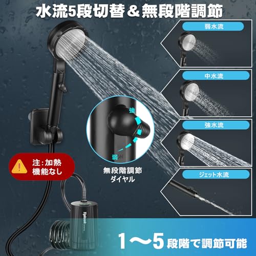 ポータブルシャワー【新バージョン·USB充電式 10000mAh】Tipkook キャンプ 電動シャワー 5段階のスピード調整 デ ジタル画面 水流量無段階調節 アウトドア 電動シャワー シャワー ポンプ 収納袋付き 簡易シャワー 屋内 屋外 軽量 浴槽から汲み上げ 海水浴 サーフィン 旅行 水遣り 洗車 植物潅水 ペットシャワー 防災 停電時用