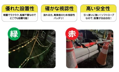 山善(YAMAZEN) タイガーフラッシュ 3m 緑 光る トラロープ ソーラー式 赤点灯 高視認性 LED発光 昼夜兼用 YA-TIGFL-3-GR