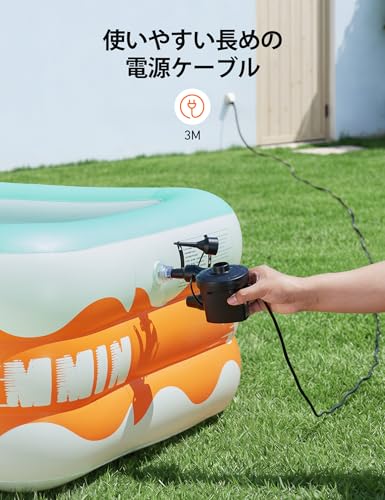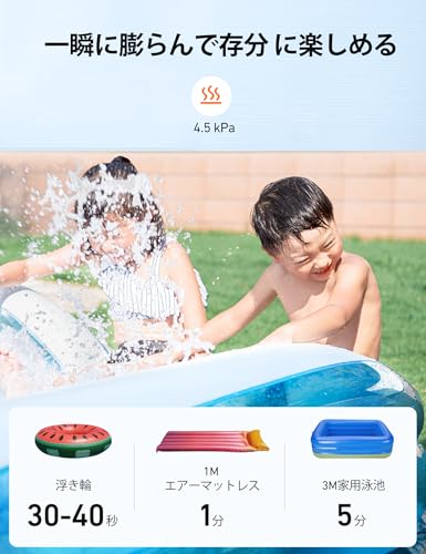 浮き輪やゴムボート、エアベッドの準備や片付けを効率化します。