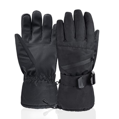 [Atercel]スキーグローブ スノーボードグローブ 手袋防寒 スキー手袋 防寒グローブ 防水 防寒 保温 通気 厚手 滑り止め 撥水加工 5本指タッチパネル対応 冬 登山 雪遊び 除雪 男女兼用(黑 M)