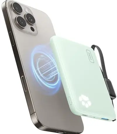 INIU マグネット式 ワイヤレス モバイルバッテリー 10000mAh 30W 急速充電 ポータブル充電器 大容量 軽量 小型 USB C 入出力 USB-C ケーブル付き パワーバンク iPhone 17 / 16 / 15 / 14 / 13 / 12 シリーズにのみ対応【パステルグリーン】