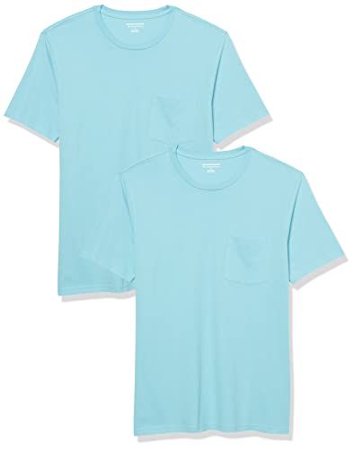 [Amazon Essentials] 2枚組 Tシャツ ポケット付き クルーネック スリムフィット 半袖 メンズ アクアブルー S